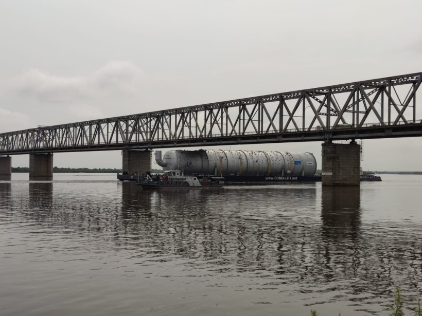 Баржебуксирный состав с первой колонной Амурского ГХК смог пройти зейский мост Благовещенска 4 июля и продолжил двигаться к причалу разгрузки в Свободненском районе. Уровень воды в реке позволил продолжить маршрут после вынужденной остановки, вызванной паводком в Приамурье.