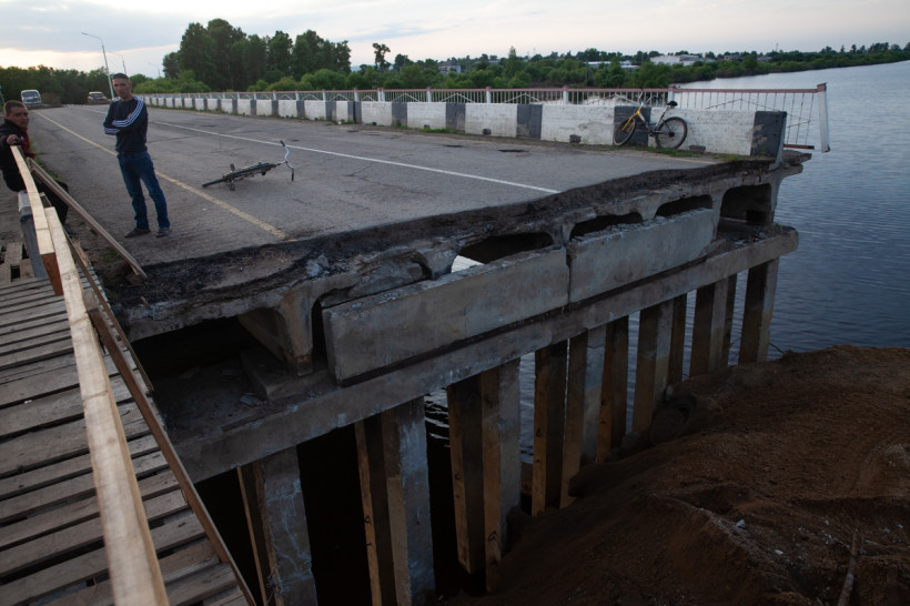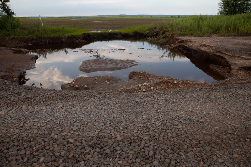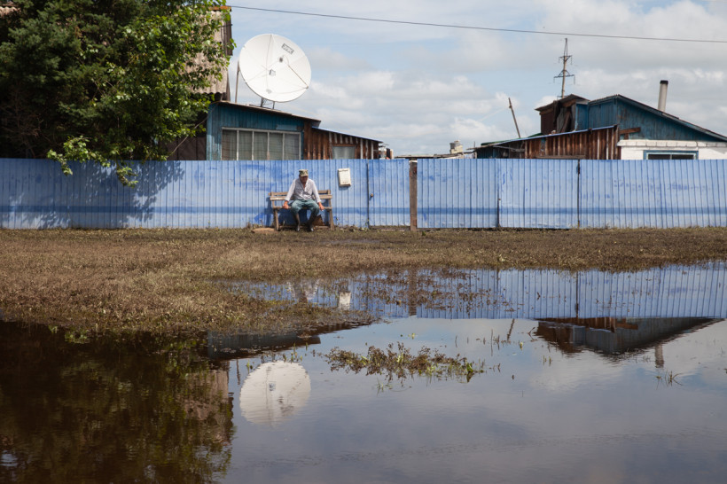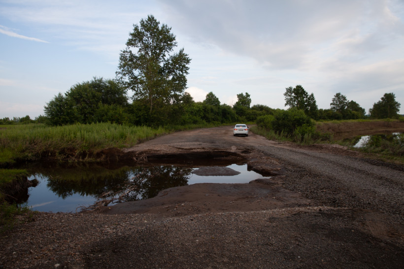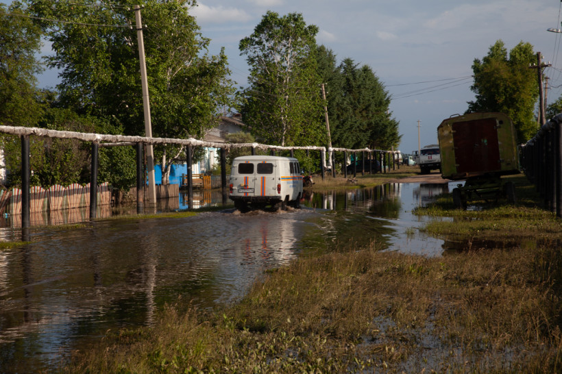 Пока другие территории Благовещенского района громко и под прицелом видеокамер готовились и переживали наводнение, Сергеевка противостояла разбушевавшемуся Амуру скромно, не привлекая особого внимания. В интернете даже было сначала трудно найти фото страшных событий после того, как в ночь на 25 июня прорвало дамбу, которую жители и спасатели возводили несколько дней. Мы въезжаем в село в субботу, 3 июля. Тут еще стоят озера. Легковой транспорт приходится менять: к подтопленцам мы едем сначала на внедорожнике, потом и на уазике – «Буханке». А еще несколько дней назад по улицам передвигались на лодках да высокой спецтехнике.