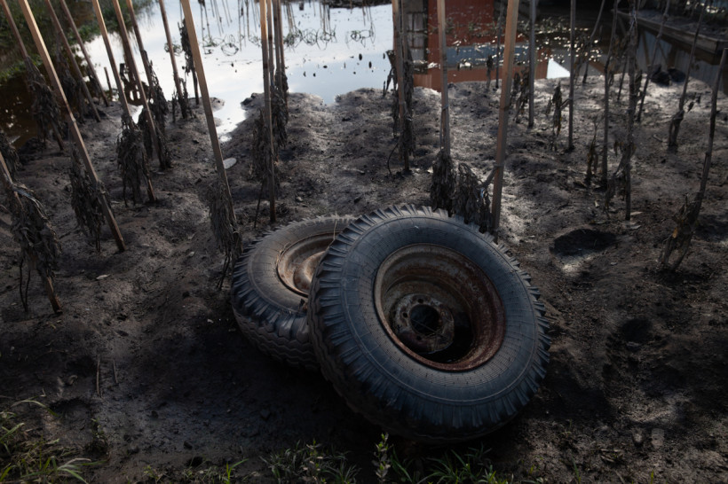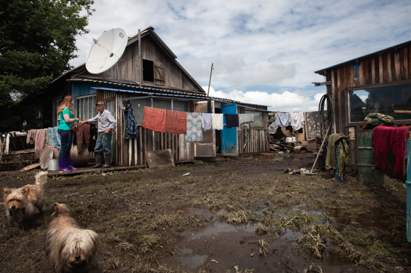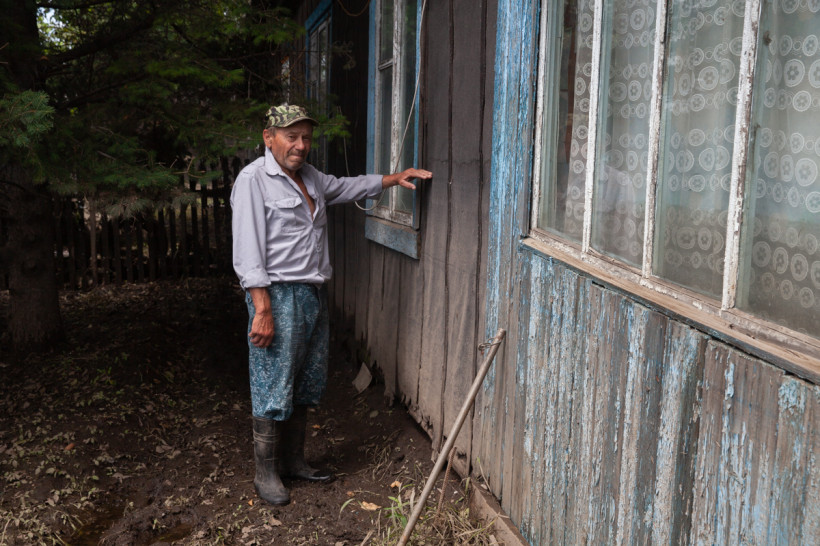 На лавочке возле старенького деревянного дома, окруженного водой, в полной растерянности сидит дед. Пенсионер заводит нас в хату, откуда уже ушла вода, и обреченно вздыхает. В нос ударяет затхлый запах, на полу черная слизь, перевернутый волной холодильник, покореженная стенка, абсолютно вся мебель мокрая. Все грязное, некоторые вещи сушатся во дворе на веревке. Выставлять вспученную мебель некуда — в подворье лужи и грязь.