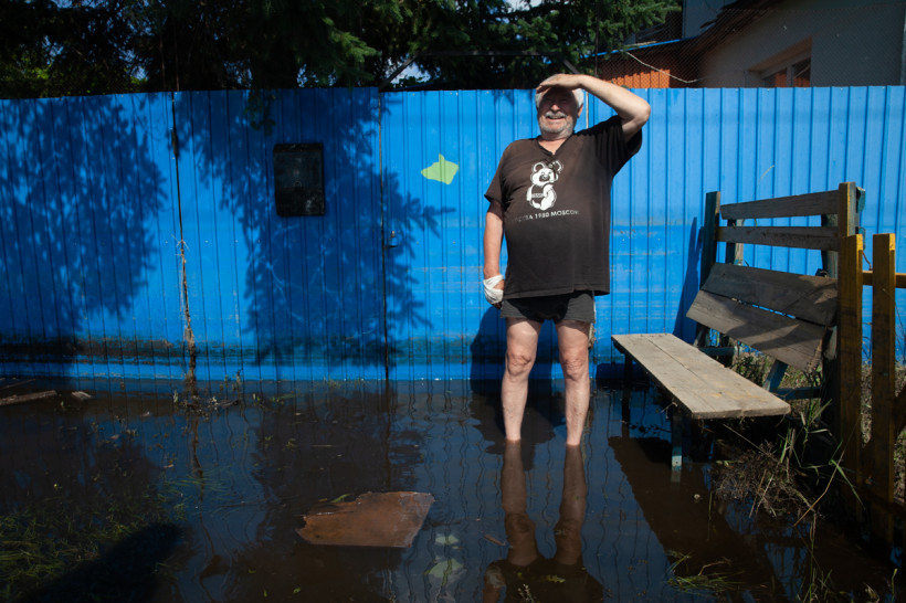 — Я на побережье Крымского полуострова. Живу на крыше, — с улыбкой встречает нас пенсионер, спустившийся и бодро шагающий по воде в шлепках. Весь его двор и путь к дороге все еще затоплены.