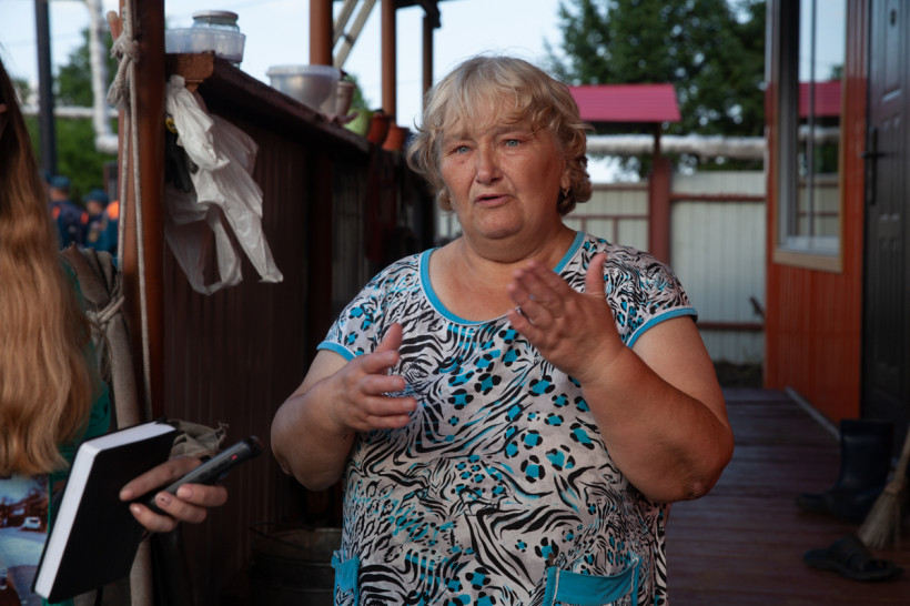 — Проснулась, встала с дивана, а у меня воды по щиколотку. В итоге кошек на крыше оставила, собак — на дровах. Мой муж местный, говорит, в 1958 году и то не до такой степени вода была, — утверждает женщина. — Как-то не придали значения предупреждениям, не думали, что волна такая будет. Никогда не видела такого наводнения! В 72-м году была вода в селе Белоярово, но меня родители увозили... Я уже сбегала домой. Огород уплыл, все перекосило, переживаю, что печка сильно пострадала. На выплату заявление написала. У многих тут истерика. Но я знаю, дети помогут: они у меня молодцы. Кормили нас тут хорошо, душ на улице построили, вода горячая, постирать можно. Директор школы Ольга Евгеньевна очень старалась, заботилась о нас, подтопленцах!