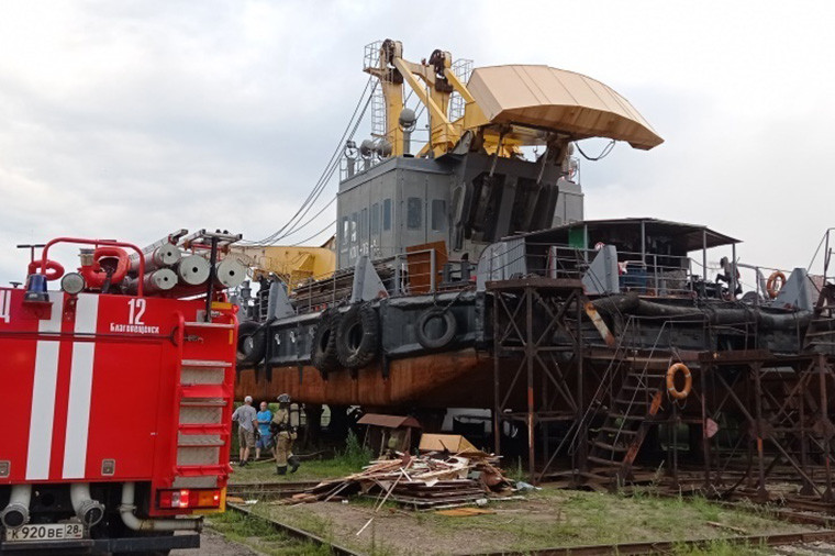 На территории торгового порта Благовещенска горел плавучий кран. Пожар произошел вечером 20 июля. На место возгорания выезжали 25 огнеборцев и шесть единиц техники.