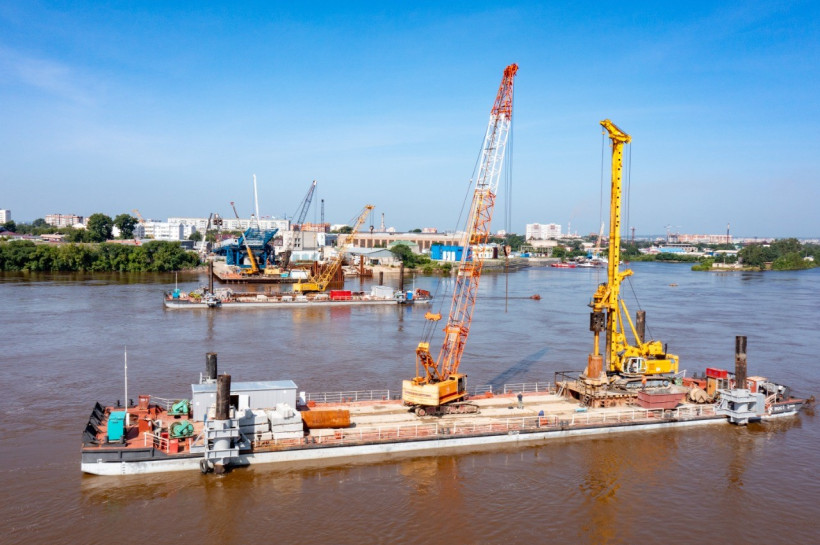 Три из пяти русловых опор нового Зейского моста будут возведены с применением плавсредств. Для работ на воде строители используют специально оборудованные баржи, на которых установлены краны и буровые установки.