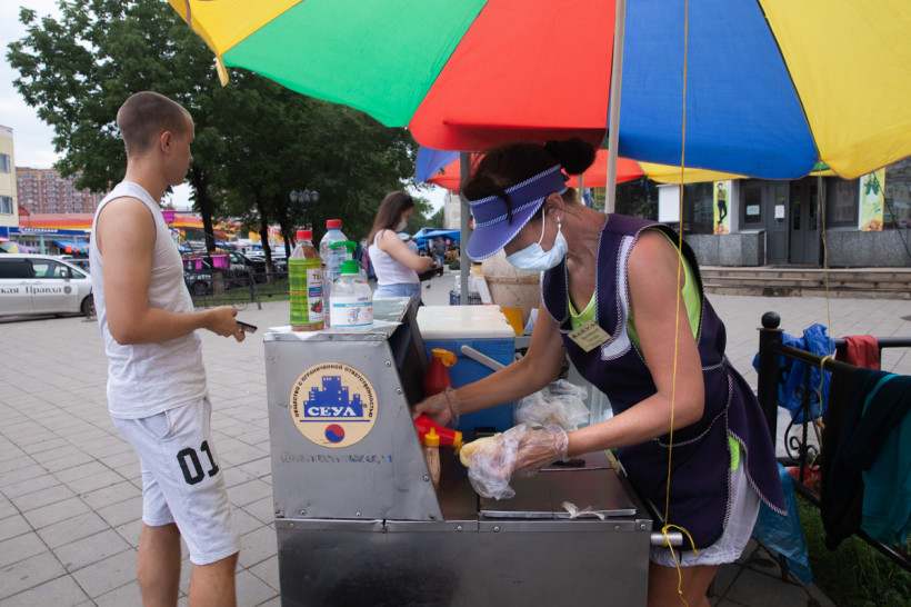 Открыть, достать, разрезать, полить, положить, отдать. И улыбнуться — пусть под маской и незаметно. Ее движения отточены до автоматизма. Оксана Настечина продает ароматные пянсе и сытные хот-доги в Благовещенске уже 15 лет. И ни январский мороз, ни июльский зной торговому делу не помеха. Секреты опытного продавца узнали журналисты «Амурской правды».