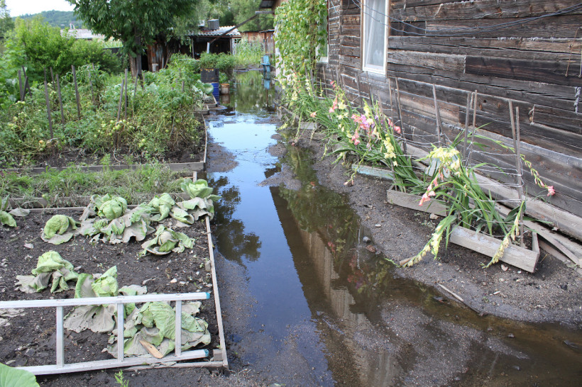 Вода начала заходить в село рано утром 5 августа, заполняя низины. Подтоплено 15 придомовых территорий и один жилой дом. Жительница дома переселилась к родственникам.
