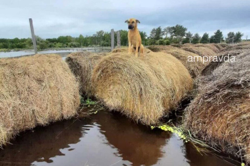 — Три дня назад ночью на наш дальневосточный гектар резко пришла вода, — рассказала хозяйка Джуны Оксана Раджабова. — Первым делом стали спасать живность. Отцепили собак, вывели на безопасное место девять коров, двух маленьких телят и три телки. Утром пришли — остальные три собаки на суше, а Джуны нет. Уже думала, что утонула где-то, потому что воды выше пояса было. Пошли на участок, а она там сидит на сене — охраняет.
