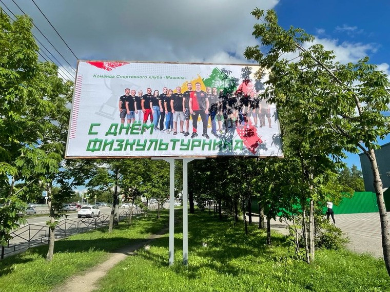 Так, в районе пересечения улиц Ленина и Шимановского появился баннер с изображением сборной Благовещенска по плаванию, в районе Красноармейской и Пионерской — сборной по шахматам и членов сборной по лыжным гонкам, на Мухина — фотография команды по пляжному волейболу Friends.