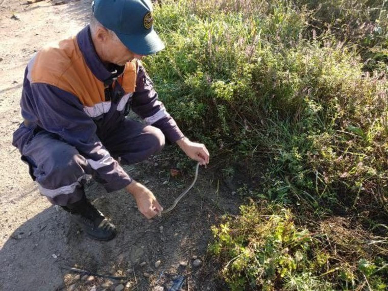 Перед самым окончанием суточной смены спасателям снова поступил вызов: в том же районе горожане увидели еще одну змею, она ползла в сторону жилых домов.