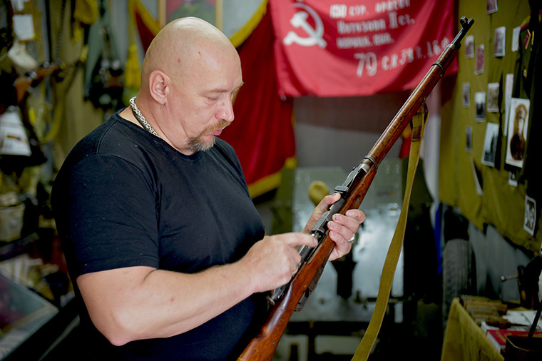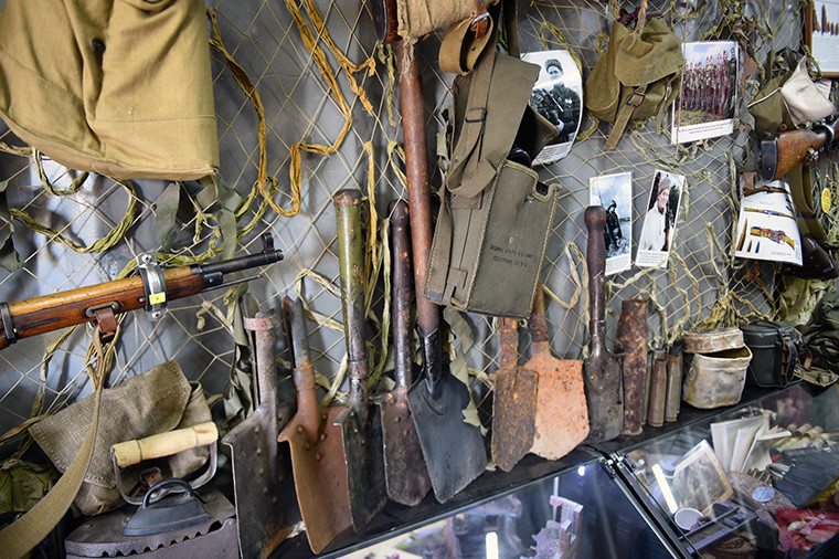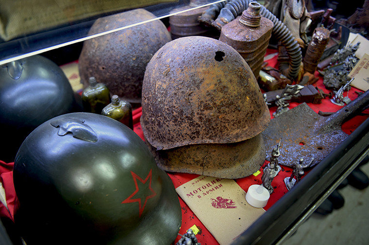 По музею можно бродить много часов — рассматривая гранатометы, пулемет максим, советскую и немецкую форму, портрет Сталина. Здесь есть даже листовки с требованием сдаться, которые фашисты раскидывали над окопами советских солдат. Но вот один экспонат — особая гордость для владельца музея.