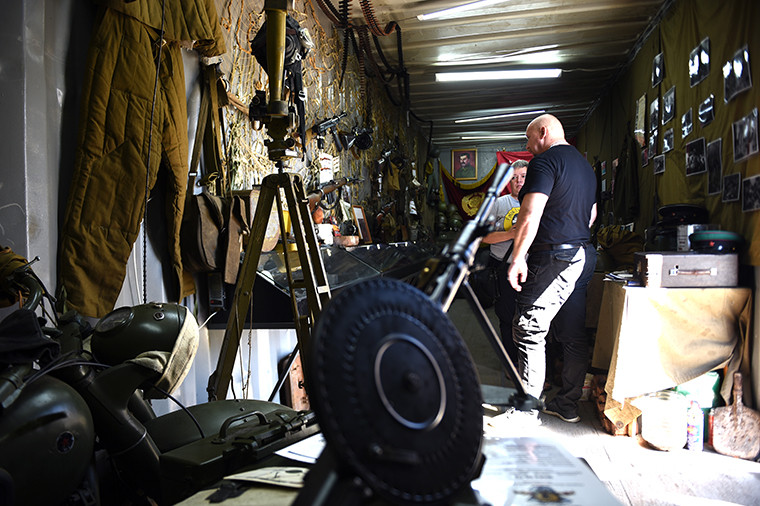 Чтобы отыскать музей, нам пришлось поплутать по улочкам в одном из новых районов Благовещенска. Обычный, с виду ничем не примечательный грузовой контейнер. Но как только открылись двери — все ахнули. Настоящие винтовки, стройные ряды кирзовых сапог, какие-то удивительные железки — и каждую хочется рассмотреть поближе.
