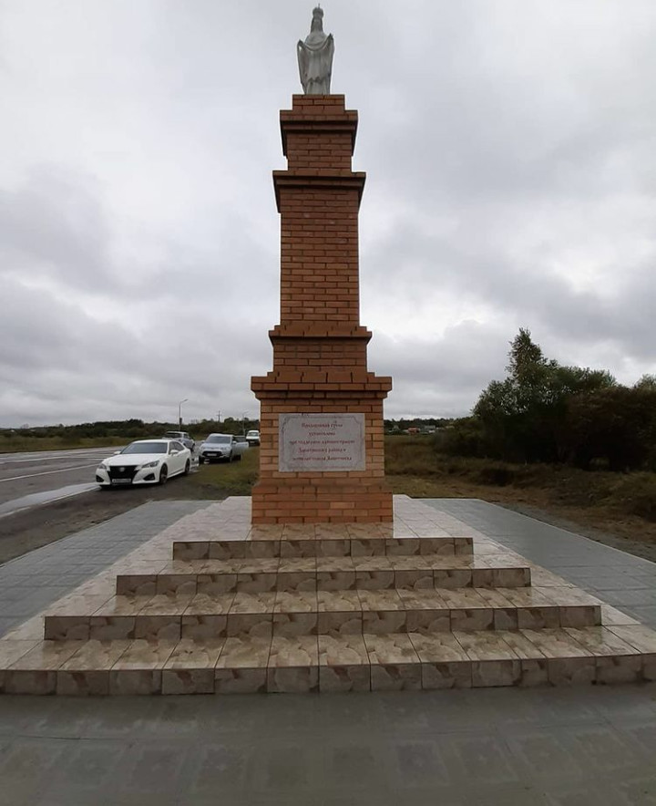 На въезде в Завитинск установили придорожную стелу со скульптурой Богородицы