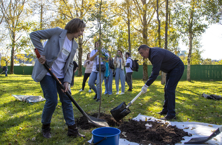 Участники форума «ProДФО» и ученики «Медиашколы» высадили деревья на Сахалине