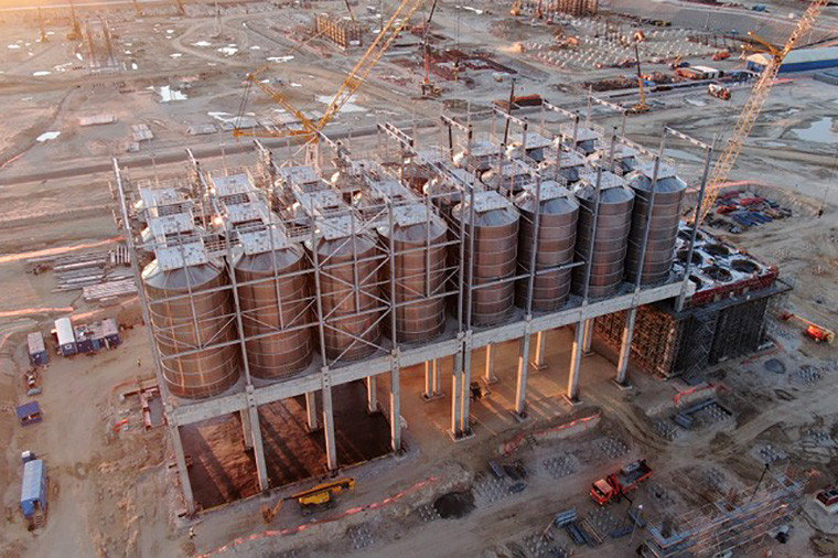 Блок силосов Амурского газохимического комплекса — один из ключевых элементов логистического комплекса нового производства. Он обеспечит возможность приема гранул готовой продукции полиэтилена и полипропилена различных товарных марок перед дальнейшей отправкой продукции потребителям.