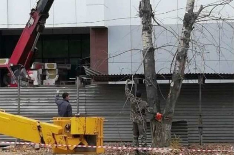 В центре Благовещенска возле строящегося торгового центра вырубили тополя