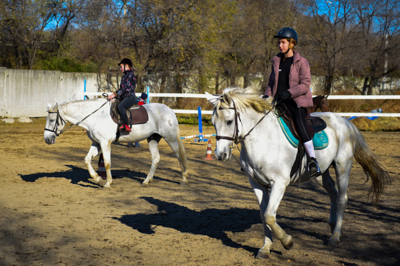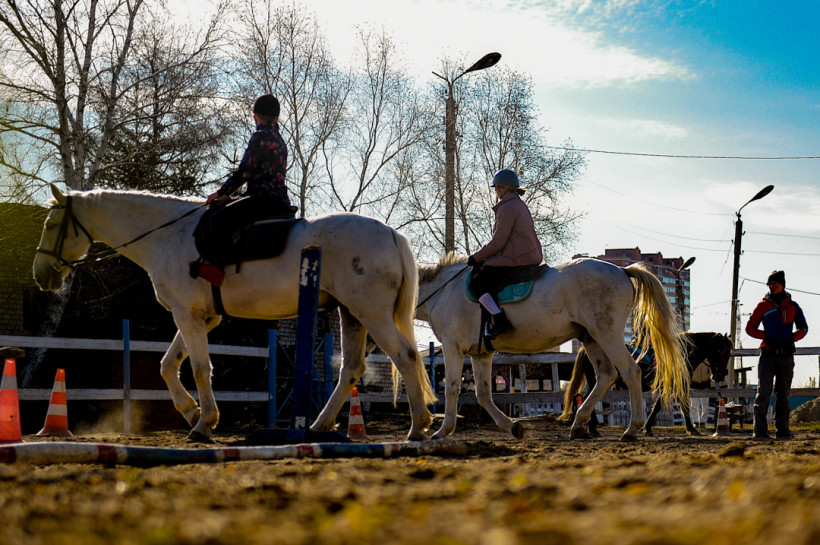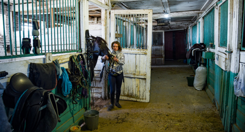 — Сначала мы обучаем верховой езде, основа основ — это умение управлять лошадью, — объясняет девушка. — Дальше каждый выбирает свой путь: кто‑то хочет скакать, кто‑то — на рысках ездить, кто‑то прыгать на лошади конкуром, кому‑то нравится выезд. А кому‑то спорт совсем не интересен — ему просто нравится проводить время с лошадью. У ипподрома большие площади, поэтому большие перспективы: можно заниматься скачками, рысистыми бегами, конкуром, выездкой. Если постараться, можно и кросс проводить.