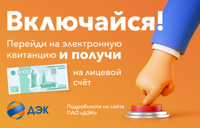 Дальневосточная энергетическая компания предлагает всем своим частным клиентам сэкономить на оплате счетов за электроэнергию, отказавшись от платежек на бумаге. Каждому сотому абоненту, оформившему отказ от доставки бумажных квитанций и заполнившему анкету на сайте www.dvec.ru, будет зачислено по 1 000 рублей на лицевой счет в базе ПАО «ДЭК». Такую же сумму получит каждый сотый клиент, который уже отказался от платежек на бумаге ранее и выполнил условия стимулирующего мероприятия, заполнив анкету на сайте энергокомпании.