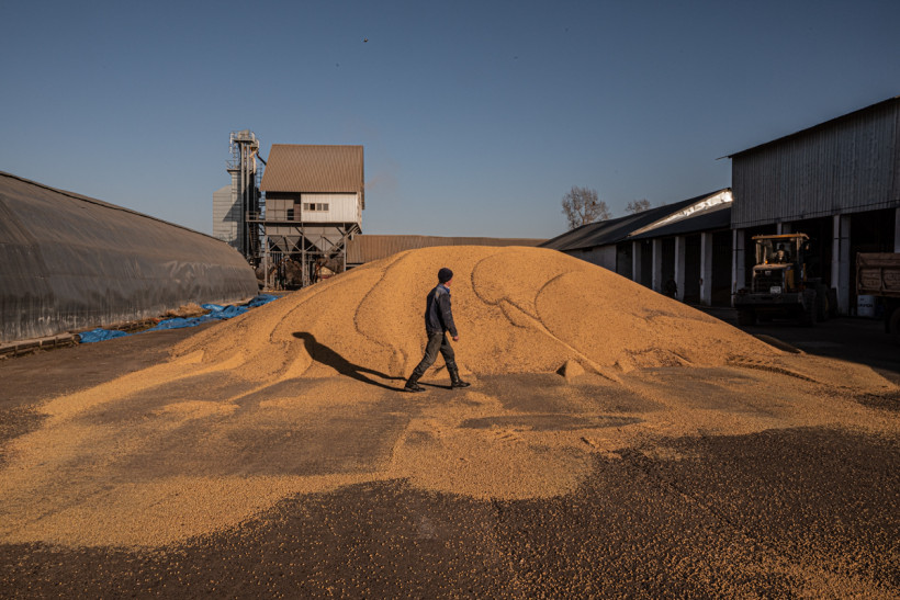 На подъезде к сельскохозяйственным угодьям в воздухе стоит крепкая взвесь из пыли и трухи растений. По засеянным соей и залитым солнцем участкам двигаются трудяги-комбайны. Правда, разглядеть их можно только во время остановок, когда облако пыли вокруг них рассеивается и улетает с ветром.