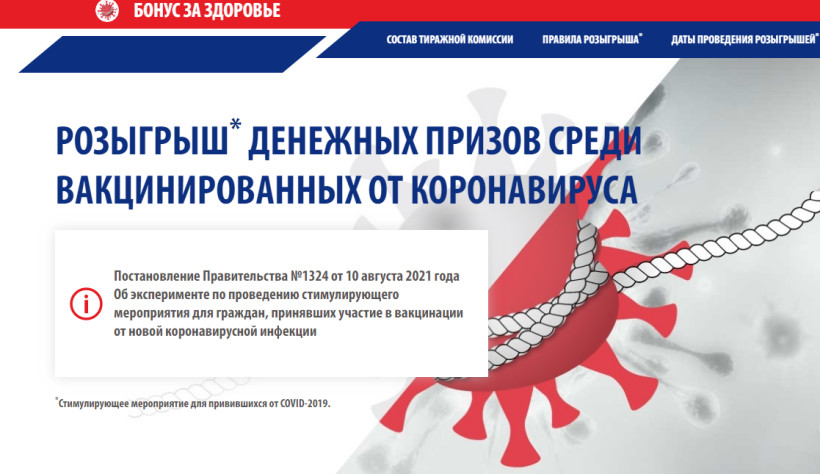 Розыгрыш денежных призов среди вакцинированных стартовал 1 сентября и должен был завершиться 1 декабря. Теперь срок продлен до 31 декабря.