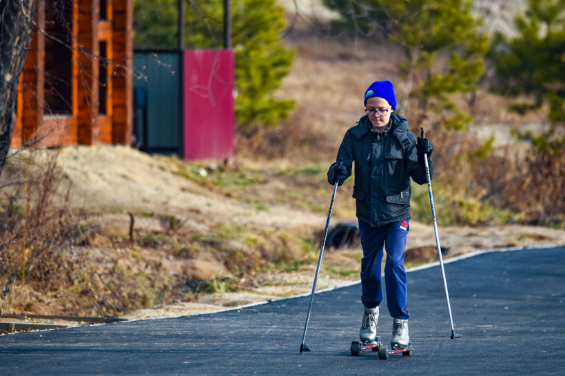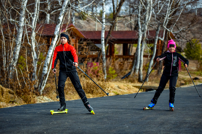 Тренер детско-юношеской спортивной школы № 1 Елена Степанова встречает нас в дверях: занятие начинается утром, большая часть ребят уже на трассе, а педагог подгоняет опоздавших. Они хватают яркие роллеры и спускаются на старт. Для меня необычное оборудование в новинку — на ребятах металлические «мини-лыжи», слегка напоминающие ролики наличием колес. Не успеваем подойти, а лыжники уже быстро и весело укатились вперед.