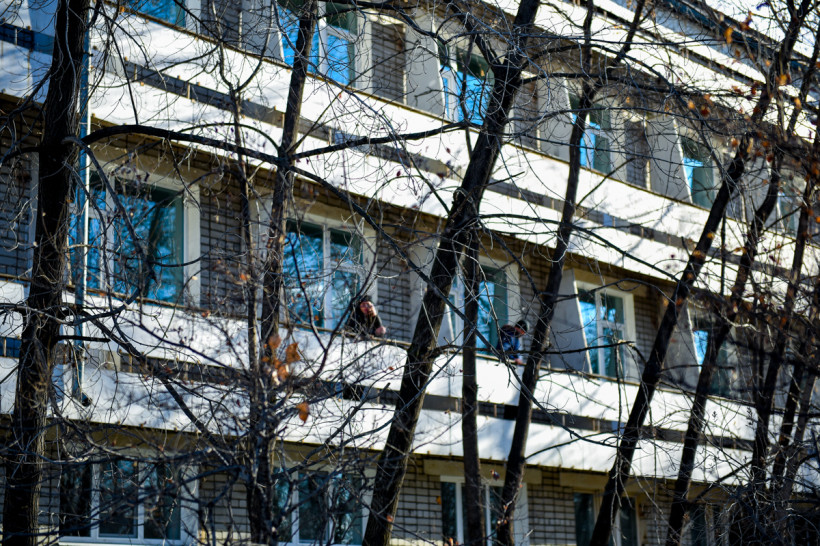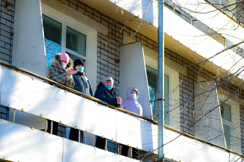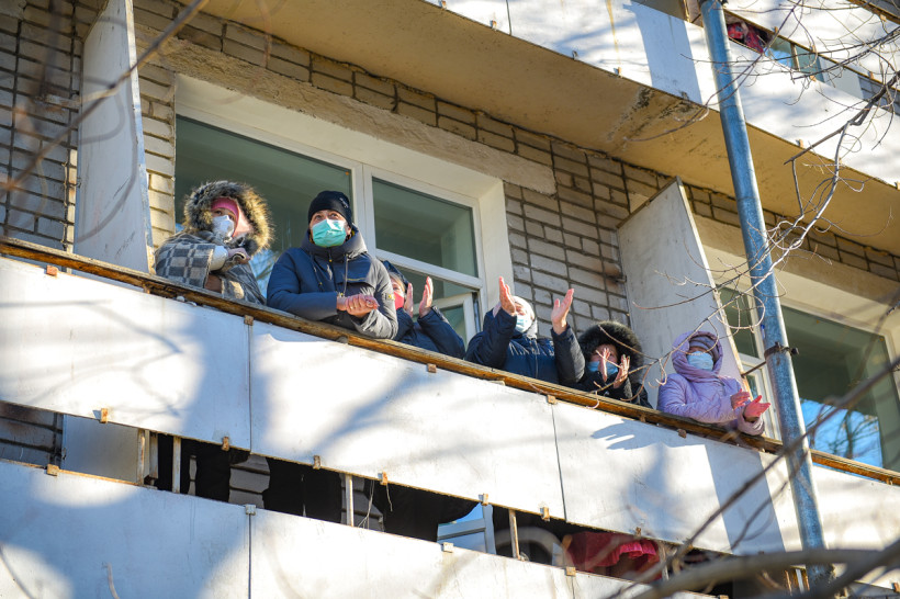 Пообедав и утеплившись, пациенты провизорного госпиталя Амурской областной клинической больницы вышли на балконы, чтобы послушать артистов филармонии.