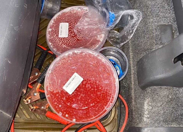 При задержании в салоне и багажнике машины ставропольцев полицейские нашли и изъяли десять килограммовых контейнеров поддельной черной и красной икры и около тридцати магазинных 250-граммовых банок имитированной икры, сообщает пресс-служба УМВД по Амурской области.