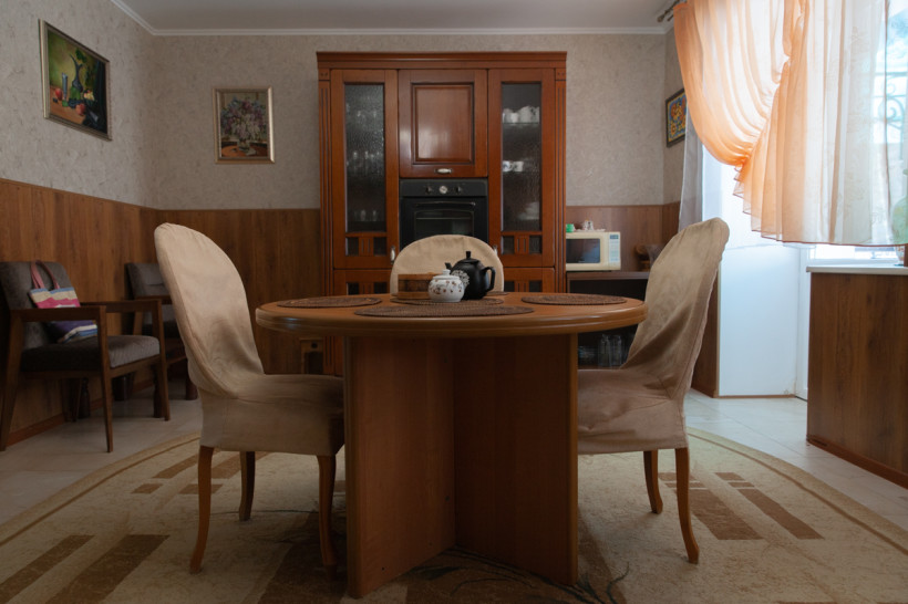 Холл, кухня и столовая совсем не похожи на стандартные помещения гостиниц. Здесь на стенах — чучела животных и картины амурских художников; уютные диваны, мягкие ковры, классические серванты, удобные стулья и множество цветов. Это история не про модный и бюджетный интерьер. Здесь все кажется основательным и сделанным надолго, обустроенным от души: «Нам хотелось, чтобы людям было комфортно».
