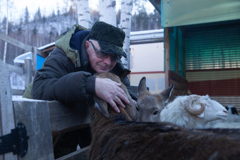 Потом были ламы из Бурятии. Отправились за ними — забрали в довесок и барана с красивыми витыми рогами. «Затем Юля решила, что нам нужны верблюды. Привезли двух из Забайкалья», — добавляет Александр.