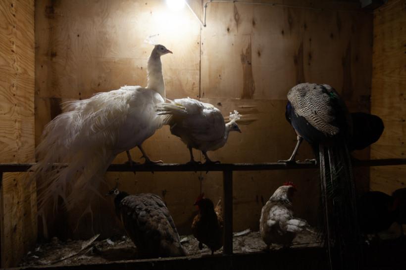 Издалека на нас недоверчиво смотрит черный кролик. В птичнике гуляют гуси, утки, цесарки, куры, павлины. Правда, последние пока без хвостов: зимняя линька. Кстати, во время зимней программы «Резиденция Деда Мороза» детей знакомят с животными и птицами зоопарка и даже дают возможность собрать яйца. «Эмоции непередаваемые, столько искреннего изумления и восторга», — улыбается хозяйка усадьбы.