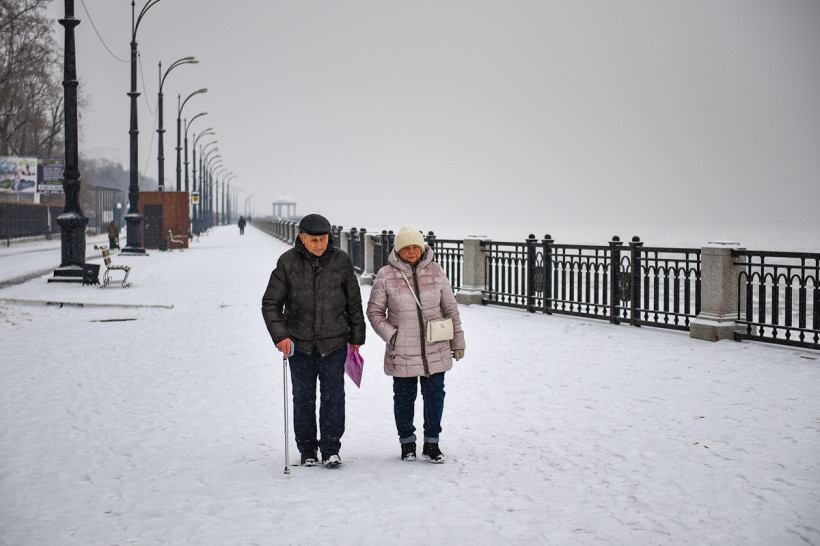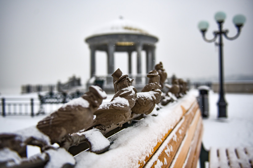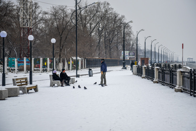 Снег кружится: фоторепортаж с заснеженных улиц Благовещенска