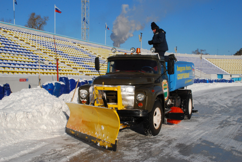 На благовещенском стадионе «Амур» начали заливать каток: теплая погода отодвинула работы