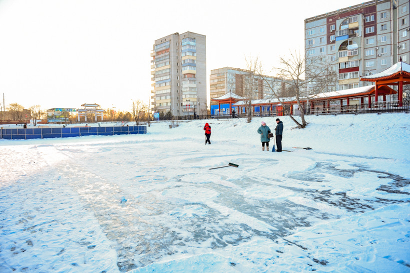 Чтобы успеть закончить работу до темноты, благовещенцы даже отказывались от предложения коллег попить чайку с лимоном и имбирем, которым угощали в администраторской парка. Но все равно художество затянулось до позднего вечера — лед искусственного озера мужчины покинули в девять часов. Финальные штрихи они наносили уже под свет фонарей.