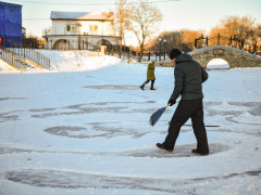 «Наша пробная открытка была не комом», — так отзываются сотрудники Общественно-культурного центра о своей первой ледовой открытке, которую они нарисовали на прошлой неделе. Всего лишь сутки простояло нетронутым изображение китайского дракона на льду пруда в парке Дружбы в микрорайоне Благовещенска. А потом местная ребятня устроила на вычищенном льду катания на коньках. Но зимние художники на них не в обиде: говорят, это был их пробный эскиз. Другую открытку они собираются нарисовать в ближайшую субботу, 11 декабря, на соседнем водоеме, где нет такой проходимости.