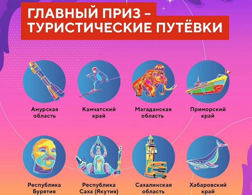 Стали известны имена победителей Большого дальневосточного квеста, проходившего в онлайн-формате в рамках «Дней регионов Дальнего Востока в Москве — 2021». Восемь участников, набравших по итогам конкурса наибольшее количество баллов, получат главные призы – путевки на двоих в регионы Дальнего Востока. В Приамурье победители увидят амурские ГЭС, космодром Восточный и побывают в Благовещенске.