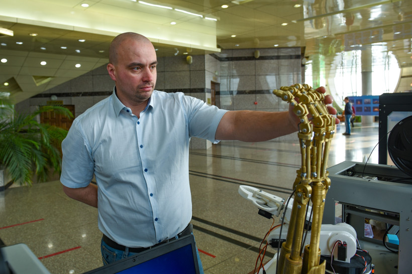 — Вы видите перед собой манипулятор (клешня из пластика размером с альбомный лист — Прим. авт.). Это — часть проекта «Нейронная система управления на расстоянии», который разрабатывают наши ребята, — рассказывает наставник «Кванториума-28» из Свободного Антон Кулигин. — Управление манипулятором будет дистанционным. Человек находится в комнате, где установлены камеры, которые считывают движение руки. Нейронная сеть анализирует движение, а манипулятор — повторяет. Если человек изображает рукой захват — манипулятор делает то же самое. Эта технология может быть востребована в том числе и в космосе.