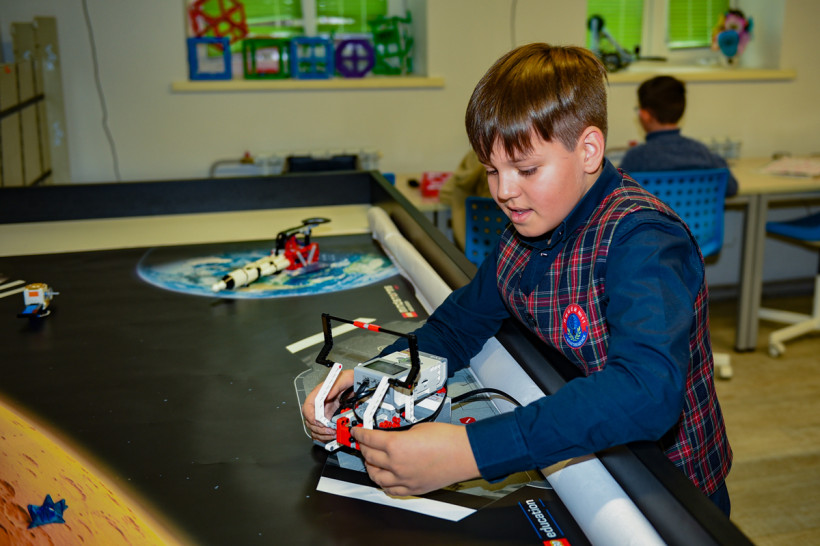 Так, на «Промробоквантуме» в детском технопарке ребята собирали спасательный аппарат, который должен был вытащить из кратера застрявший луноход и добыть руду из метеоритов. Для этого педагоги заранее подготовили площадку: на столе с изображением космоса и планет расположили космическую станцию, спутники, звездолеты.