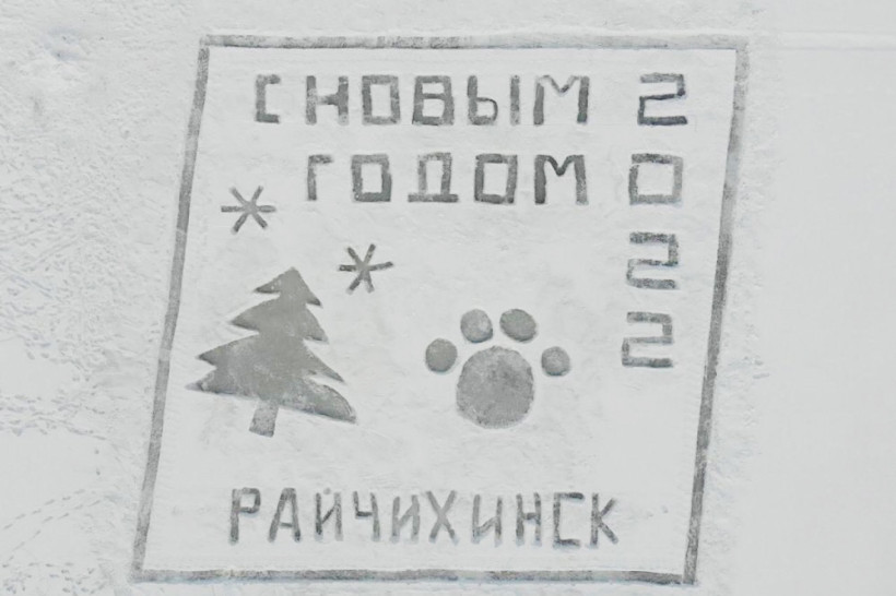 Оба варианта начинающим ледовым художникам не подошли. Стало ясно, что можно забыть о своих задумках: тигриную морду, гирлянду и другие элементы сделать не выйдет. Тогда ребята взялись импровизировать и творить то, что им по силам. Так на картинке появились елочка, снежинки, след тигра и двухметровые буквы, поздравлявшие земляков с Новым, 2022 годом.