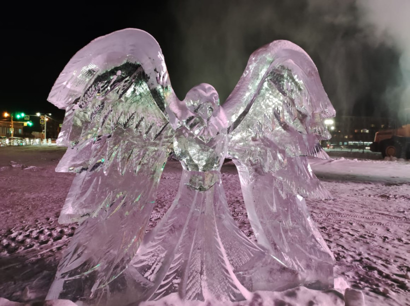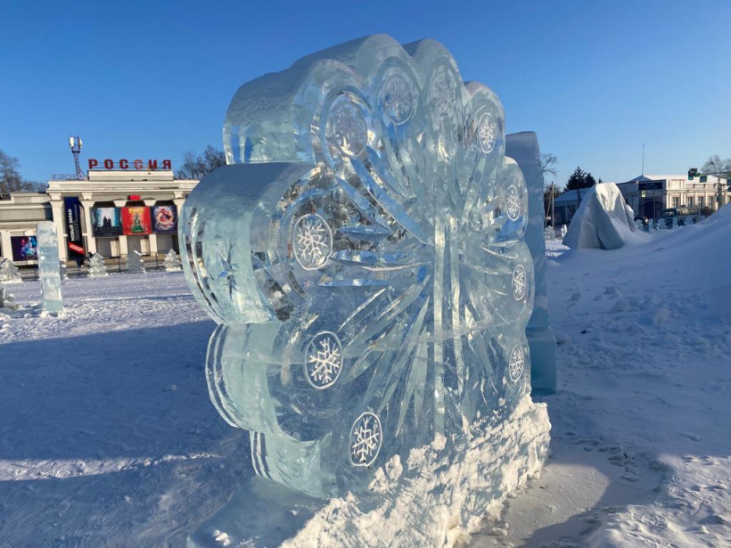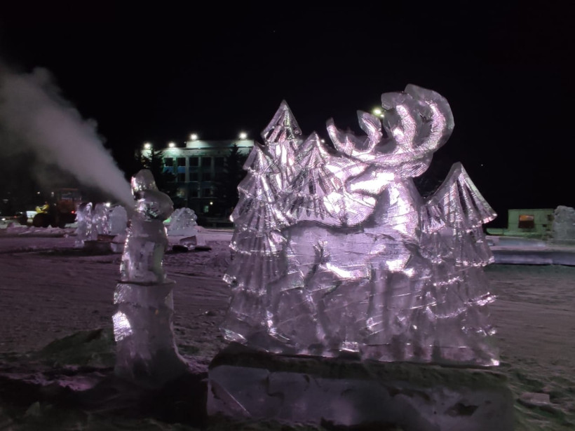 Хабаровские специалисты вырезали ледовые фигуры для городка Белогорска