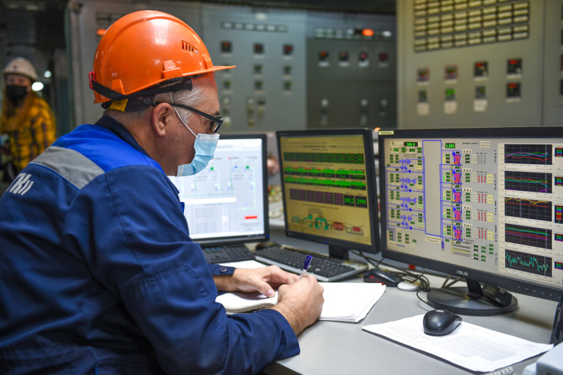 На тепловом щите управления оперативный персонал находится круглосуточно. Специалисты контролируют заданный режим работы оборудования и обеспечивают безаварийную работу станции.