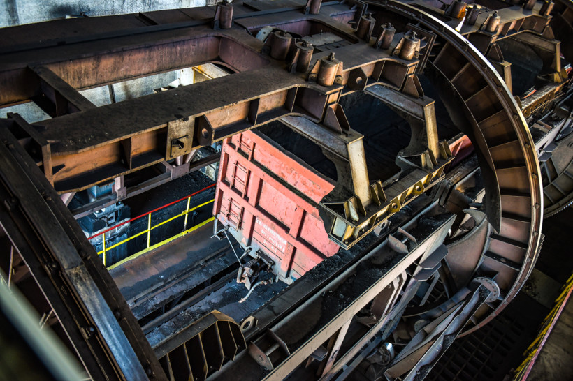Первый в цепочке производства тепла и света — цех топливоподачи. Здесь сначала разогревают, а потом разгружают вагоны с углем. В этом году на ТЭЦ смонтировали новый вагоноопрокидыватель. 210‑тонное устройство заменило устаревшее 1986 года выпуска. Гигантская машина имеет прогрессивную зубчатую систему привода вместо цепной и легко переворачивает на 180 градусов 66 тонн угля из вагона. Черные куски проходят через решетку, дробильную машину, а оттуда по транспортерам доставляются к котлам или на угольный склад.
