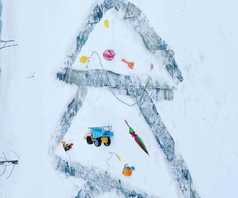 — Снег у нас рано выпал, потом было до +4 градусов, и почти все растаяло. Мы долго ждали, и вот в воскресенье, наконец, пошел снег. Он так ровно лег, и я подумала: нужно что-то с ребенком сделать из снега — и сделали елку, — объяснила Ольга.