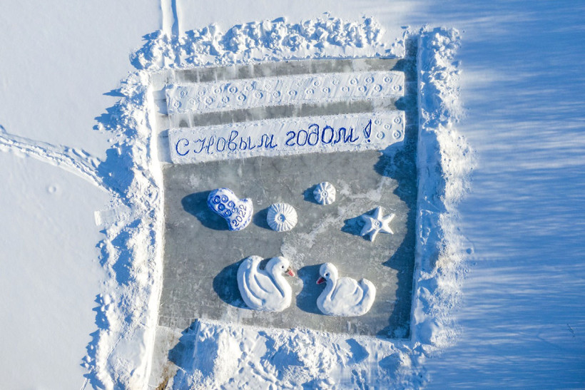 - От тигра до Гагарина: как жители пяти российских городов рисовали новогодние открытки на льду