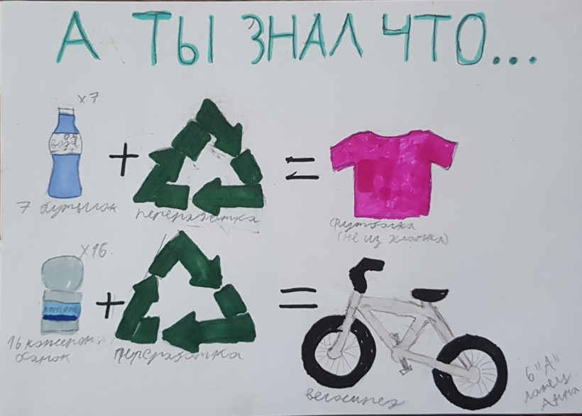 — Идеи понравились все, — рассказала автор проекта Ольга Дудукалова. – Некоторые запомнились особо. Например плакат, где автор показывает, что семь переработанных бутылок равны одной футболке. Понравилась веселая урна для сортировки мусора. Если честно, то многие плакаты можно брать и использовать во взрослых экологических акциях.