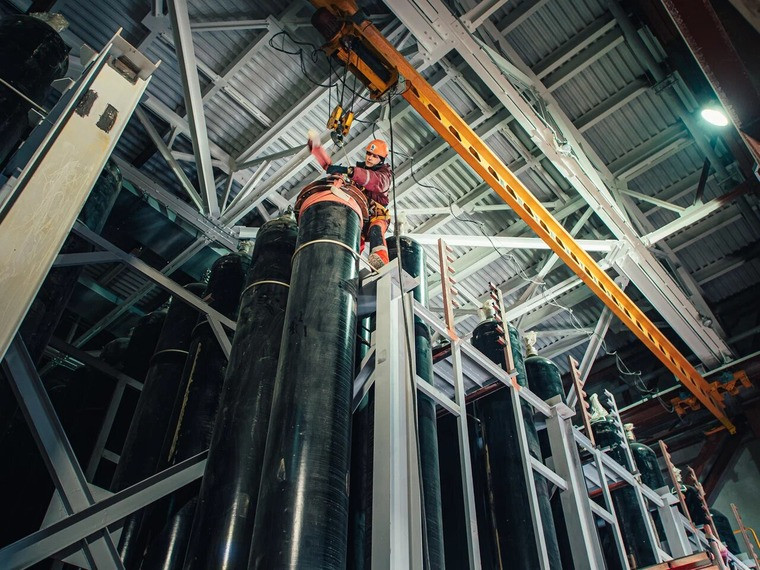 На втором этапе баллоны обвяжут технологическими трубопроводами. После того, как необходимое технологическое оборудование будет смонтировано, его испытают на прочность и герметичность.
