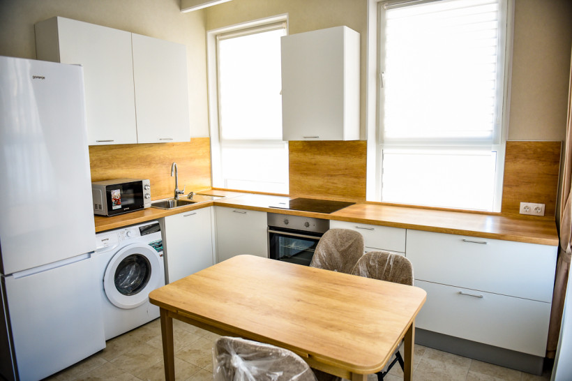 Пятиэтажные жилые дома встречают гостей большими теплыми холлами, в которых есть отдельная колясочная с туалетом и подъемник для людей с ограниченными возможностями, а также лифт. Квартиры в домах разные – от однокомнатных до четырехкомнатных. «Квадраты» распределяют в зависимости от количества членов семьи. Сразу бросаются в глаза высокие потолки – под три метра. При этом в квартирах очень тепло – обслуживает новый микрорайон собтвенная котельная, которая может работать сразу на двух видах топлива.