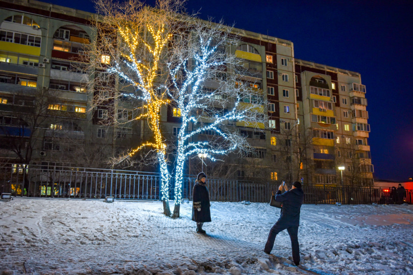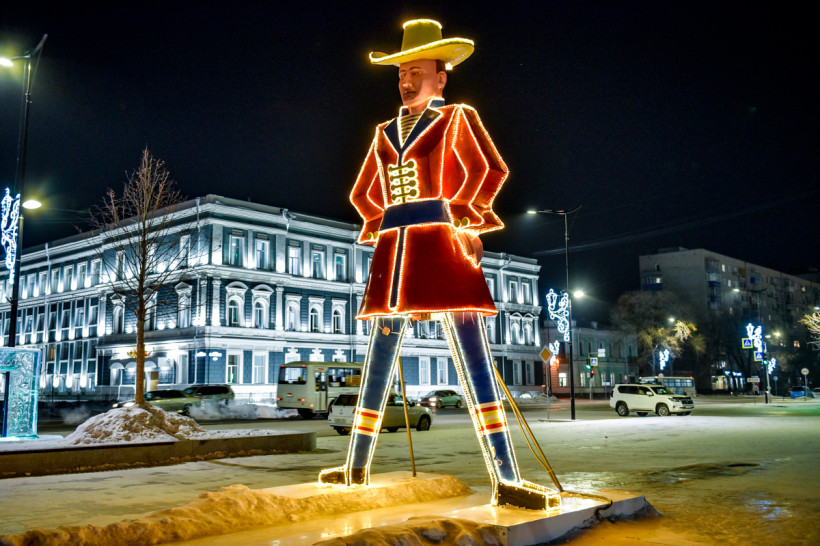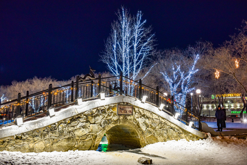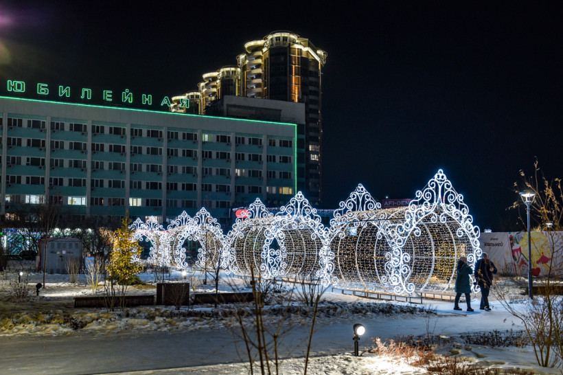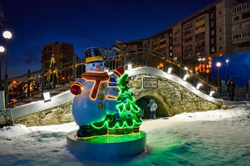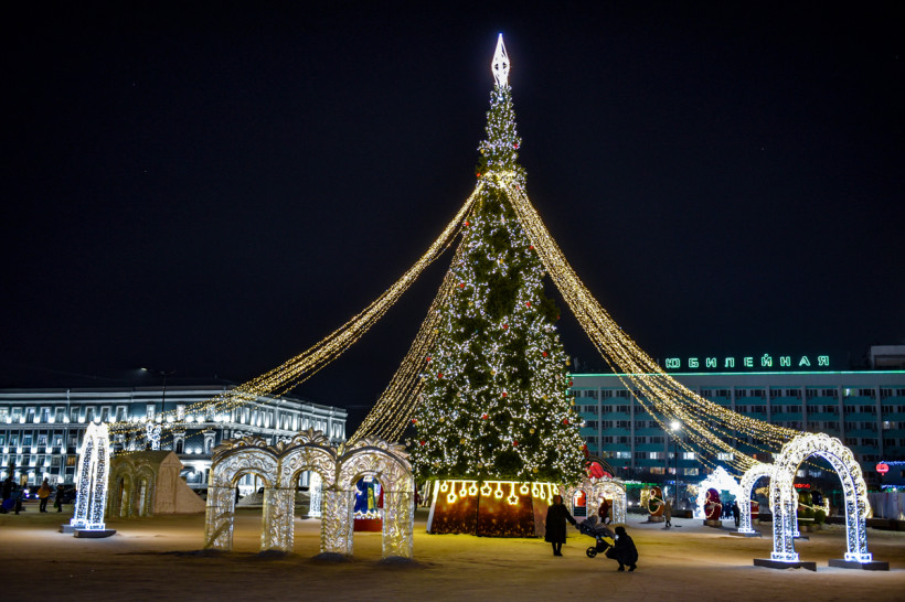 Баба-яга, елка-путешественница, привет из новогоднего прошлого: фоторепортаж вечернего Благовещенска