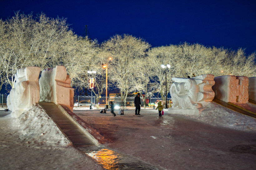 — В этом году администрация города решила закупить фигуры из стеклопластика, а не традиционные ледовые. Они не тают на солнце — стеклопластик не чувствителен к капризам погоды — и, надеемся, не будут испорчены вандалами, — рассказала пресс-секретарь мэра Благовещенска Екатерина Касимова. — Фигуры из пластика сложно испортить. Они долговечны, практичны и светятся намного ярче льда. Кстати, нападений на сказочных существ пока не наблюдали. Пострадала только нога Гулливера, но это случилось непреднамеренно.