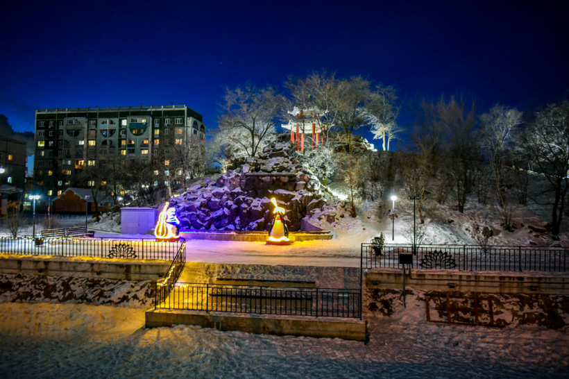 Атмосферу праздника также создают светящиеся деревья и новогодние шары, фотозона с пингвинами, светодиодные арки и ярко подсвеченные водоемы. «Волшебство кругом! Спасибо за сказку!» — отзываются горожане и гости Благовещенска в инстаграм-аккаунтах.