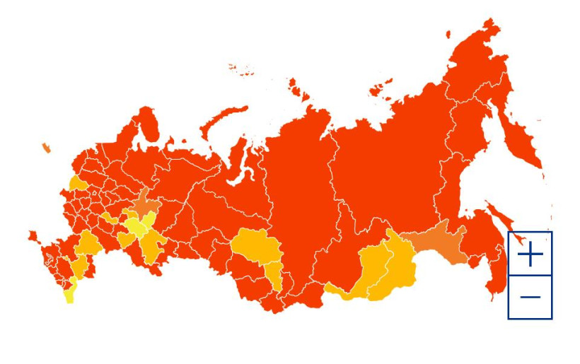 С субботы Амурская область на карте, размещенной на сайте стопкоронавирус.рф, отмечена оранжевым цветом, что соответствует выявлению 91—150 случаев на 100 тысяч населения за неделю. В красной зоне — более 150 случаев на 100 тысяч населения за семь суток.