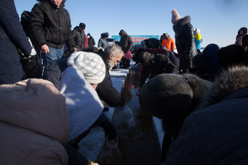 Благовещенцы в Крещение ныряли, набирали из иордани воду и загорали (фоторепортаж)