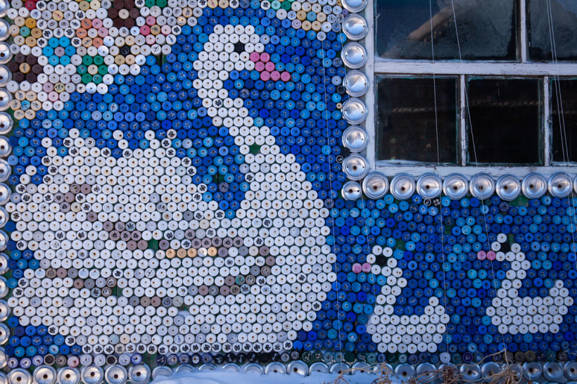 Стоящий почти на берегу местной речки дом Михеевых трудно не заметить — такую необычную отделку раньше видеть не приходилось. Встречает подъезжающих выложенный на фронтоне домика олень. На боковой стене — большие цветы, с другой стороны — лебеди из цветных пластиковых крышек. За домом — украшенная пластиком беседка. Сарайчик, где любит мастерить хозяин дома, тоже оббит пластиком, а на бане красуется выложенная частями бутылок с вкраплениями фольги лошадь. И даже «плитка» во дворе — ковер из выпуклых нижних частей пластиковых бутылок. Кропотливый труд, на который у хозяйки дома ушло 20 лет жизни.